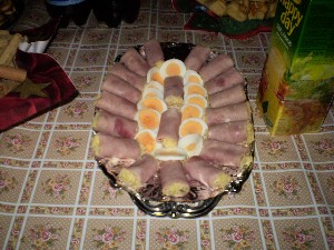 Ha sonkatekercsnek készítjük el, két végét reszelt sajtba mártjuk, kosárkáknál a krém tetejére teszünk sajtot. Különböző zöld fűszerrel, zöldséggel díszítjük.