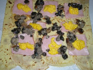kimaradó palacsintákat megint rárétegezem, megint sonka, a rántotta