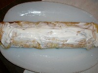 feltekerem a művet, és óvatosan tepsibe teszem. A tetejét, hogy ki ne