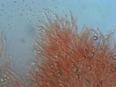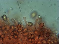 Mikroszkopikus jellemzők: spóra: 6-8 x 4-5 µm , ellipszoid, sima, dextrinoid; spórapora halvány sárgásbarna; bazídiuma 4 spórás.