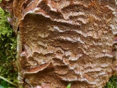 Termőréteg: agyag- vagy fahéjszínű, fiatalon néha szürkésrózsás árnyalattal, idősen barna, vörösbarna; gyakran feltöredező. Pórusok száma 4-6(7) per mm, mélységük 2-5 mm, kerekdedek vagy szögletesek. Széták (legalább 20-szoros nagyítású kézi nagyítóval és erős fénnyel látható szőrök) csak itt találhatók, a steril kalapszélen nem.