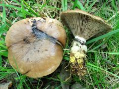 Lemezek: mélyen lefutók, ritkán állók, vastagok, gyakran villásan elágazók, fehérek, majd szürkések, végül szürkésfeketék lesznek.
