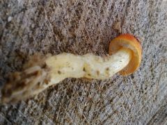 Tönk: 3-6 cm hosszú, max. 1 cm vastag, fehéres vagy sárgás, legalja rózsaszínes lehet, felszíne hosszában szálas, a micélium fehér vagy halványsárgás.
