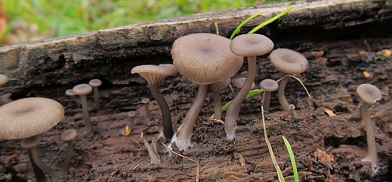 2016. október 29-én Szűcs Bélával Jávorkúton gombásztam, s útban hazafelé megálltunk Létrástetőn egy pihenőpark mellett fekvő öreg bükkfarönknél. Felfigyeltünk egy fán növő szürke gombára, melyet formára valamelyik Omphalina (békagomba) fajnak véltem, de az élőhelye eddigi ismereteim szerint egyáltalán nem stimmelt.