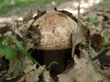 Bár a kéthónapos szárazság után hiányzott a legalább háromnapos, csendes gombanövelő eső, a szél viszont viharosan fújt, mégis reménykedve indultunk útnak. A csigarágta galambgombák, rozsdásszárú fülőke múmiák és fonnyadó tintagombák után, amikor a vaskos, frissen kikelt piruló galóca család a szemünk elé került, mind a négyen lehidaltunk, vagyis inkább lehasaltunk: 8 szemmel, négy géppel ugyanúgy, ugyanazt láttuk-e ?