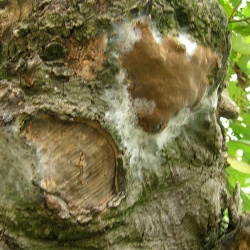 Télen, kora tavasszal, még a nedvkeringés megindulása előtt kell metszeni a fákat. A visszavágást motoros, teleszkópos fűrészekkel már a földről is végezhetjük. Néha megkésnek a fák metszésével, gyakorta elmarad a seb durva szélének finomítása, sebzáró anyaggal történő kezelése. A környezetben pedig sok a gombaspóra, amik előszeretettel telepszenek meg a terített asztalt jelentő sebeken. A gomba növekedésnek indul a seben, majd egyre mélyebbre hatol, és elpusztítja az ágat, majd a fát is. Eddig ostorfán a parázstapló (Phellinus igniarius) és az égerfa-rozsdástapló (Inonotus radiatus) termőtesteit figyeltem meg. A gombák meghatározásában Kaposvári László, a Miskolci Gombász Egyesület tagja segített.