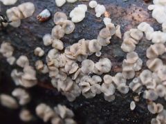 A termőtest (apotécium) lapos tányér alakú, nagyon vékony húsú, félig átlátszó, zsíros fényű, szürkés-sárgásszürkés színű. Kerek széle a növekedés folyamán beszakadozhat. A csészék egyesével és többedmagukkal nőnek, horgonyzó hifákkal kapcsolódnak a fogadó aljzathoz.