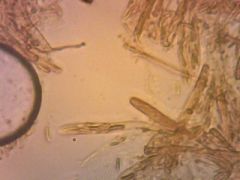 Spóra: 4-6 x 0,5-1 µm; átlátszó, virsli formájú, sima, végei kerekek.